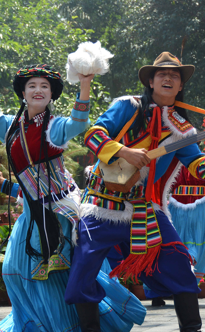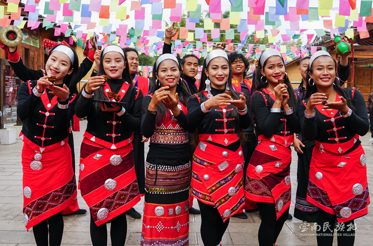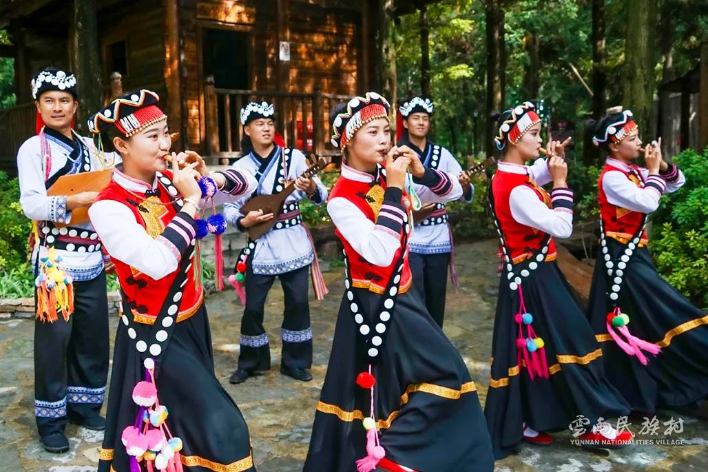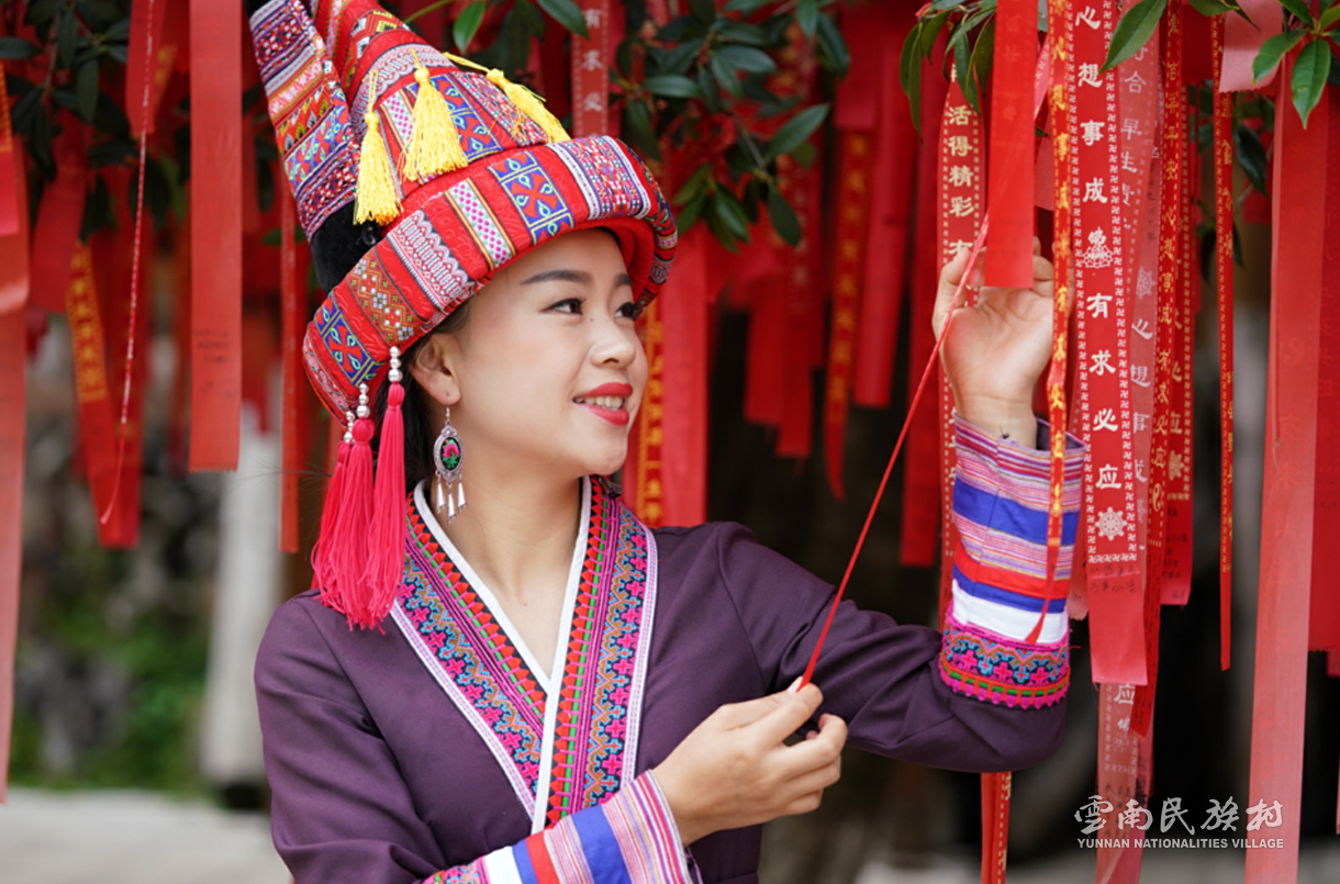 彝族在云南境內(nèi)約471萬人,是省內(nèi)人口最多、分布最廣的少數(shù)民族,主要聚居在金沙江、元江流域和哀牢山、無量山腹地。彝族是一個能歌善舞的民族,民間打歌、跳樂之風(fēng)盛行,大三弦、跌腳舞久負盛名?;鸢压?jié)是彝族最具特色的民族節(jié)日。彝族村占地50余畝,三虎浮雕墻與虎頭內(nèi)祖師形象表現(xiàn)了彝族虎鷹文化。太陽歷廣場圖騰柱上有太陽、虎、火和八卦圖形象,周圍環(huán)繞著10個朝向不同的月球造型,外圓周有12生肖石雕。依山而建的“...